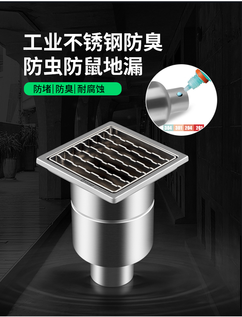 工业不锈钢地漏采用高品质SUS304/SUS316L/SUS321不锈钢材质。