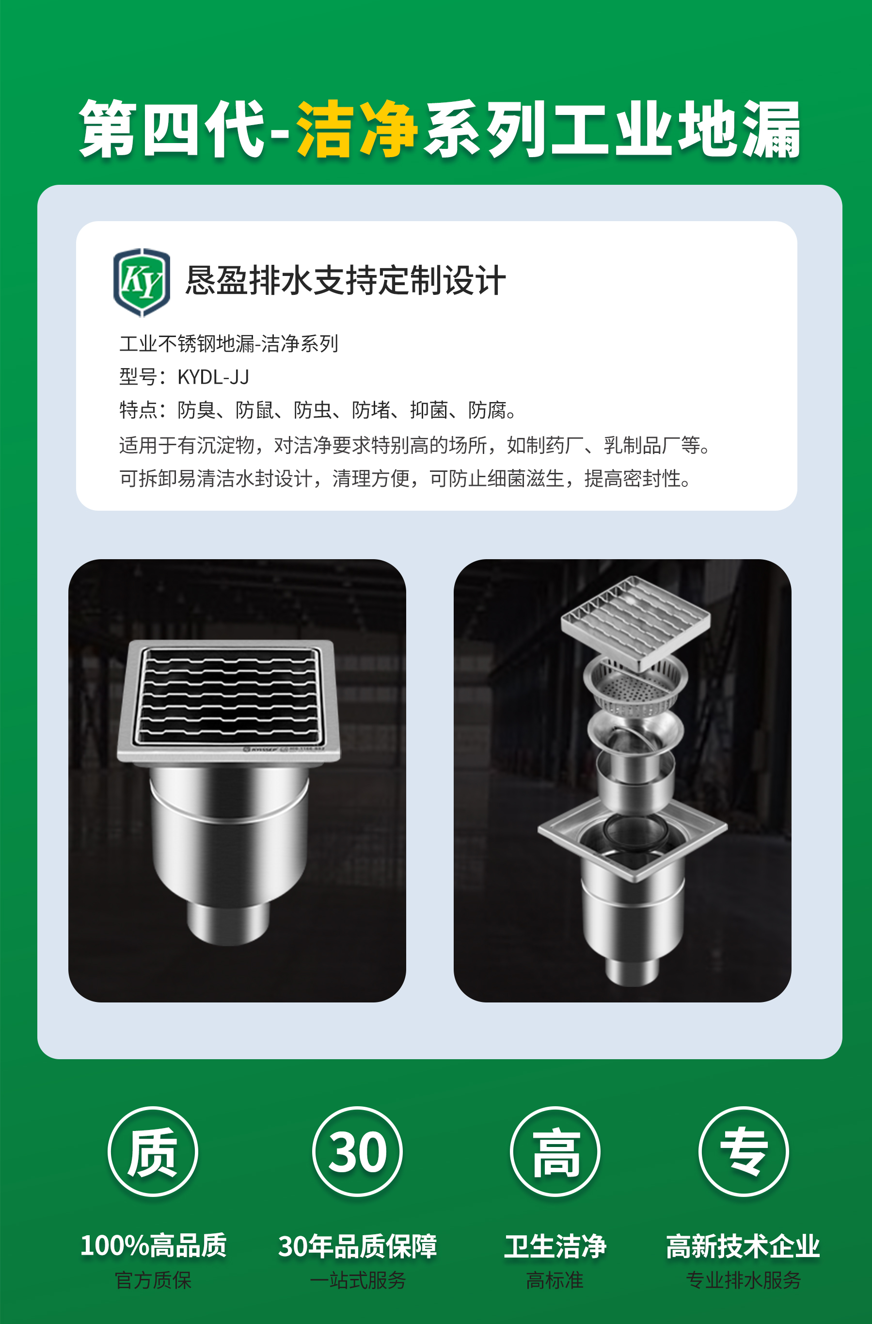 一是防臭效果好。食品工厂对空气质量要求高,洁净地漏能够有效阻止下水道的异味上返,避免异味污染食品生产环境。