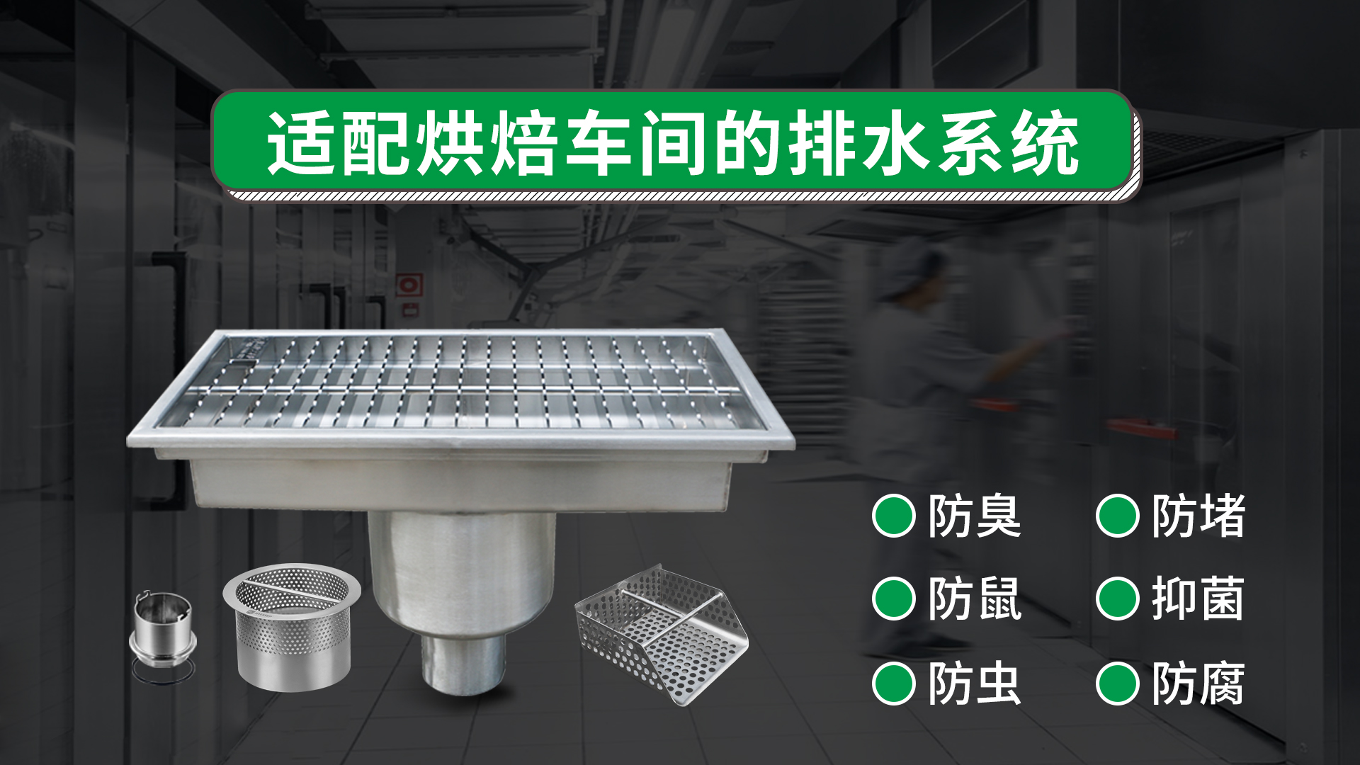 大流量排水能力(如奔腾系列 DN100 型号排水速度达 11.6 升 / 秒),适配烘焙车间清洗设备或地面时的瞬时大水量需求。