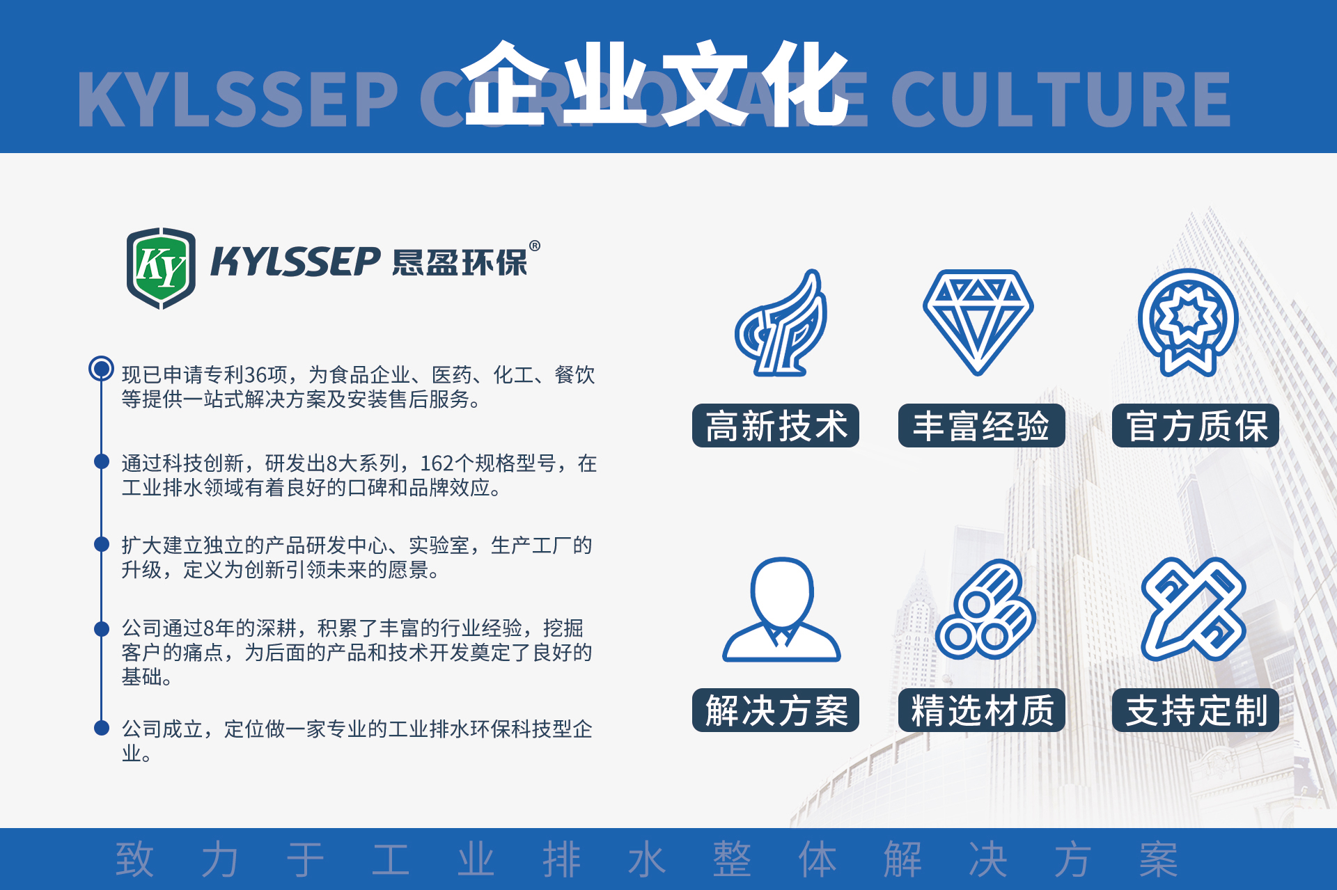 恳盈环保专注于工业排水环境卫生安全领域,始终坚持“以客户为中心,为客户创造最大价值”的服务理念,关注客户和行业的痛点,通过科技创新推动行业升级,全面打造产业发展新局面,将不断创新的环保科技服务于客户与生活,为客户提供极具竞争力的环保产品和更高品质的增值性服务。
